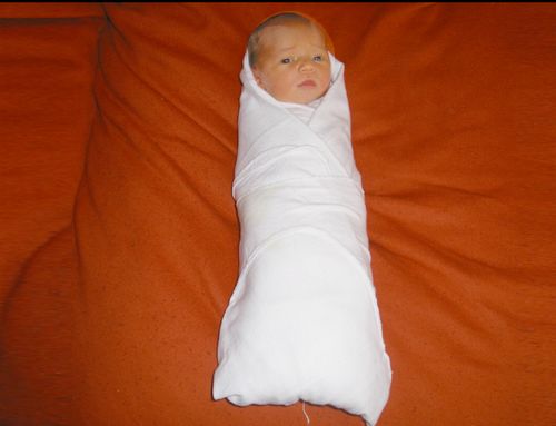 Au temps de nos ancêtres bretons, ceux-ci considéraient qu’un enfant naissant était inachevé. On croyait qu’en laissant ce corps mou se développer seul, l’enfant pourrait plus tard marcher à quatre pattes et finalement ressembler à une bête. C’est pourquoi les mamans pratiquaient tout un rituel de soins et de remodelage. Ainsi, des femmes spécialisées voyaient à donner aux bébés des formes idéales. On le plaçait dans des langes en position droite et on lui installait une bande sur le menton, qui servait à retenir les oreilles contre la tête. Puis on le liait avec des bandes de lin comme une momie. Parfois on installait trois épaisseurs de langes et on lui plaçait les bras le long du corps. Pour compléter le traitement, on plaçait l’enfant dans une sorte de hotte étroite, pour qu’il ne puisse bouger. Cet emmaillotement composait le costume de l’enfant jusqu’à l’âge de sept ou huit mois, alors qu’il passait à la robe que garçons et filles portaient jusqu’à six ou sept ans.