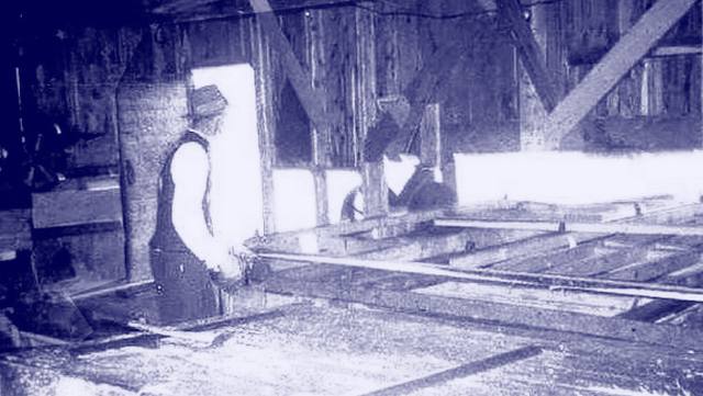 La scieure de bois et les résidus ligneux servaient à alimenter l'impressionnante fournaise de la bouilloire cylindrique de cinq mètres de long par deux mètres de diamètre. Une immense cheminée de trente mètres de hauteur aspirait la fumée dégagée par la combustion. Un système d'injecteurs contrôlait le niveau d'eau de la bouilloire, eau qui était pompée directement de la rivière. Un conduit de quinze centimètres amenait la vapeur à un moteur à piston unique d'une puissance de 150 c.v. Un système compliqué de courroies et de poulies aux différents diamètres calculés avec précision et sis dans la cave du bâtiment en bois, actionnait la machinerie à scies circulaires située à l'étage supérieur.