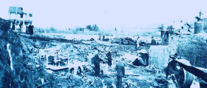 Pourtant, le Petit Faubourg a aussi connu une dure épreuve. Les anciens n'ont jamais oublié la sombre journée du 20 mai 1942 alors qu'un violent incendie a mis en cendres le moulin à scies et plusieurs maisons du faubourg. Voir l'article du journal régional.