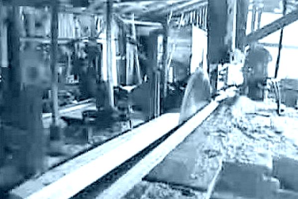 Le débitage du bois se faisait à l'aide d'un chariot monté sur rail et pourvu de crochets pour maintenir les billes en place. Un système d'embrayage entraînait le chariot vers la grande scie à dents rapportées, qui au contact de la bille, émettait un bruit fort strident. À l'aide d'un bras de levier, le scieur ramenait le tronc à l'épaisseur nécessaire pour obtenir soit la planche ou le madrier, sans omettre de calculer l'épaisseur du trait de scie d'environ 9/32 de pouce. Cette opération s'exécutait sur les exigences du client, soit les cultivateurs, soit les marchands de bois.